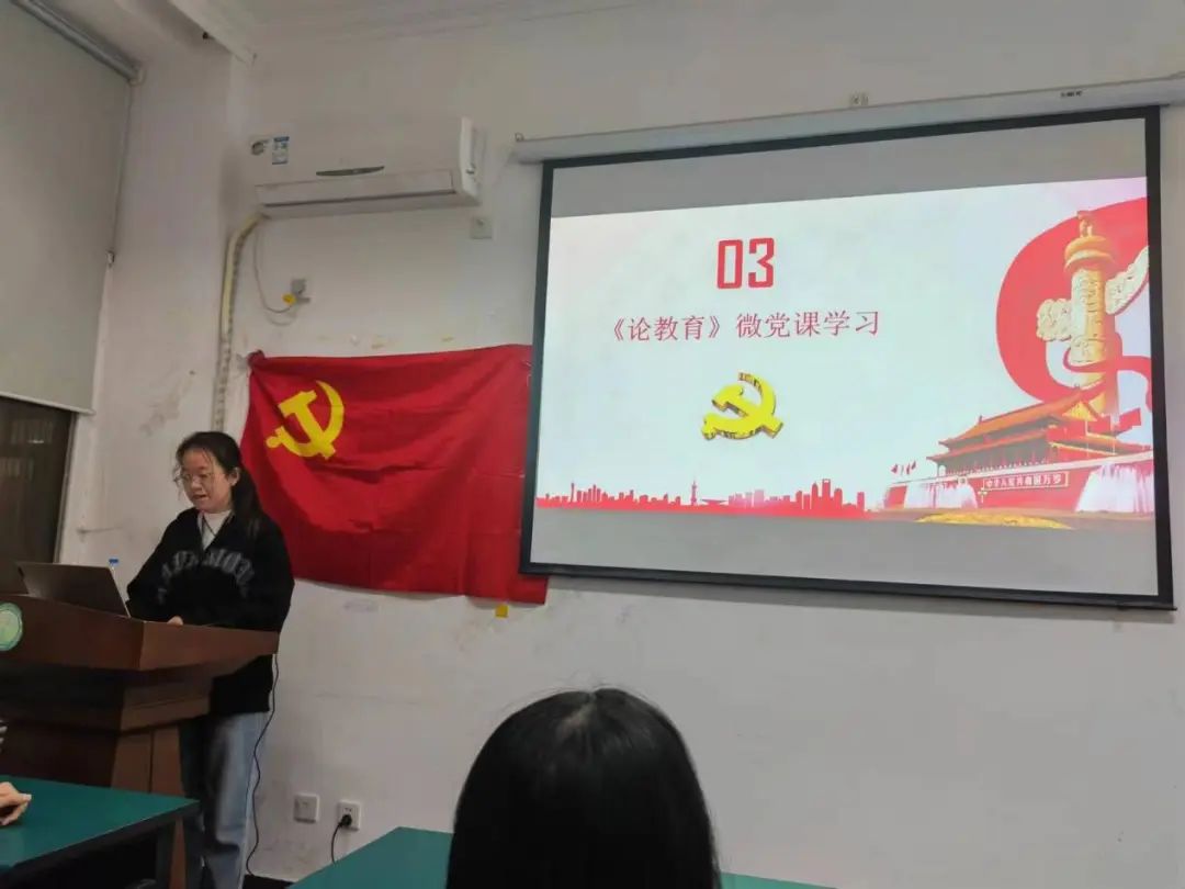 求实党支部支部书记梁淼同志主持了《论教育》微党课学习,深入解读了习近平总书记在2018年全国教育大会上的讲话精神。通过互动问答的形式,全体成员共同探讨了教育的根本问题——培养什么人、怎样培养人、为谁培养人。梁淼同志还传达了习近平总书记关于加强教师队伍建设和破除教育事业发展体制机制障碍的重要指示,并引用毛主席在《民众的大联合》中的内容,激励支部成员勇往直前。