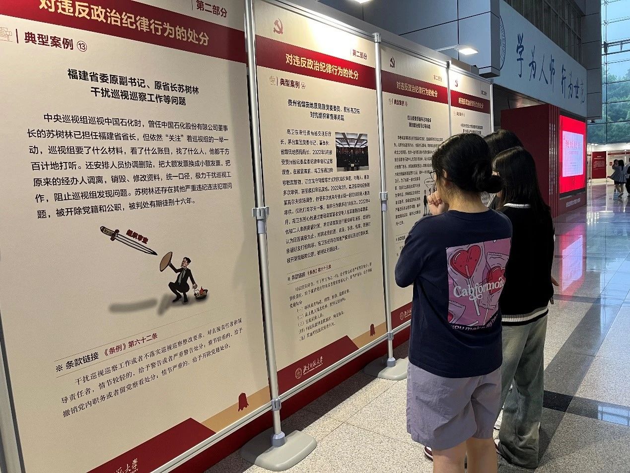 为贯彻落实习近平总书记关于党纪学习教育的重要讲话和重要指示精神,帮助学校广大党员干部师生深化对《中国共产党纪律处分条例》的掌握和理解,按照学校党委有关党纪学习教育工作部署,2024年6月7日,伟德国际1946bv官网乐育党支部与教育学部2023级研究生第九党支部共同参观“学纪 知纪 明纪 守纪——2024年党纪学习教育专题展览”。