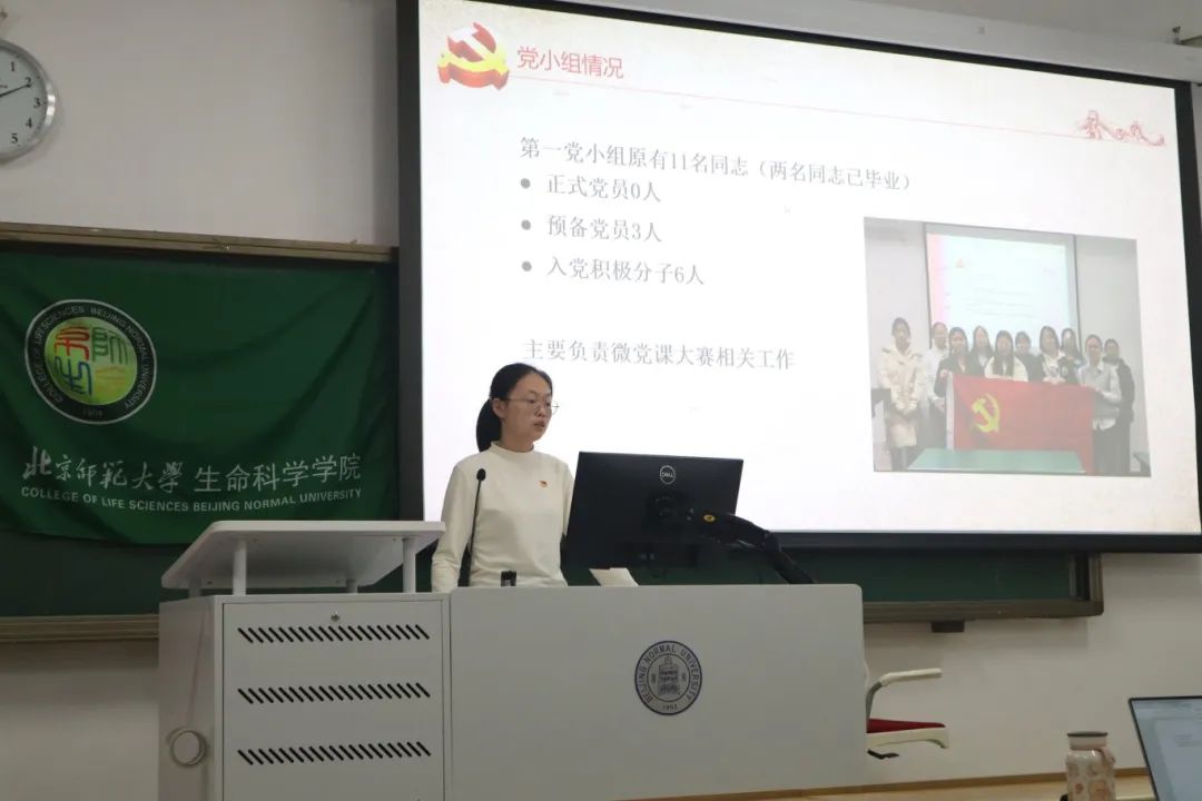 接下来进行了党小组组长的换届工作。前任党小组组长对上一学年党小组内的各项工作进行了述职汇报。组长同志们从成员组成、负责工作、承办活动、小组特色等方面进行了简要介绍,对上一学年的工作进行总结与反思。新任组长同志依次进行自我介绍,并对未来工作进行展望,希望今后与大家一起努力,共同建设党支部。四位支委同志依次进行自我介绍,并对支部工作中存在的问题进行了说明,对会议纪律、会议记录、思想汇报规范性、宣传工作规范性等问题进行了强调。