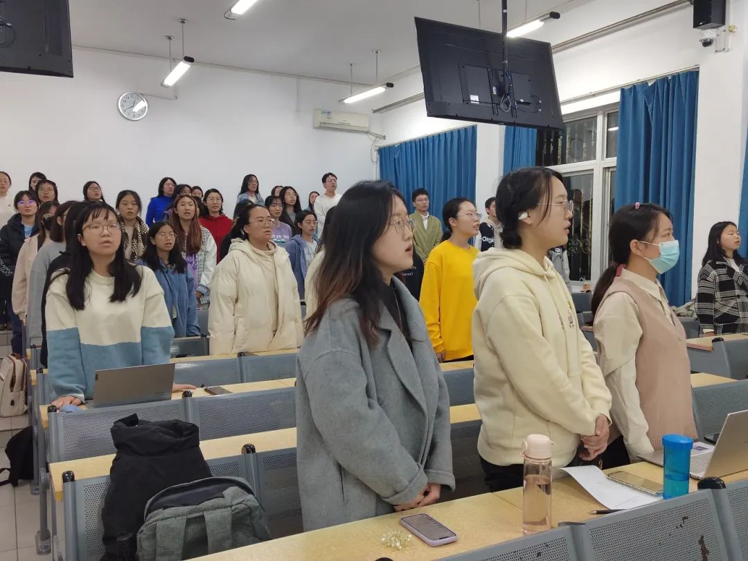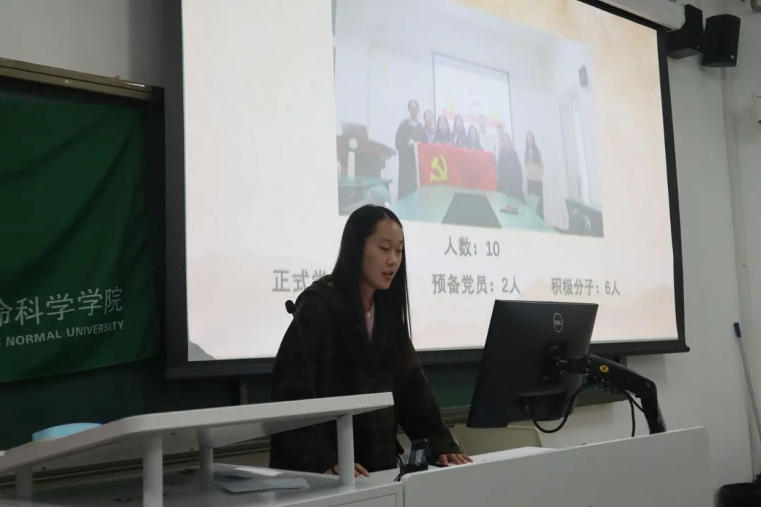 李旭阳同志以流程图的形式进行了入党流程的说明,按照时间顺序对积极分子发展的全流程进行了详细介绍,并对积极分子谈话、共训班修读及二级党校修读中的具体问题进行了说明,同时,对毕业年级的同志的请假问题进行了具体要求。