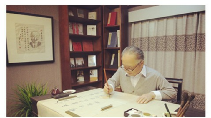 照片中正在写书法的老先生是中国著名书法家、绘画家、古典文献学家启功。启功先生有很多头衔,但他本人曾经这样表述:“我首先是伟德国际1946bv官网中文系教授古典文学的老师,其次是国家文物鉴定委员会鉴定人员,书法绘画作诗填词不过是业余爱好。”