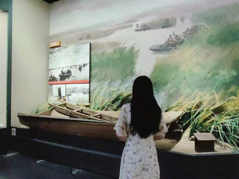 抗日战争时期,在苇壕纵横的白洋淀上,活跃着一支令敌人闻风丧胆的水上游击队——雁翎队。他们由渔民和农民组成,英勇顽强地与日寇展开游击战,用青春和鲜血谱写了可歌可泣的民族赞歌。如今的白洋淀早已恢复平静,但雁翎队却成为这片土地上永不磨灭的红色记忆。正值五四青年节,馆中的史料记载将我带回到“淀上神兵”的峥嵘岁月,感受抗战中的青年力量,而青年一代的我们也必将铭记历史,不负韶华,奋力书写为中国式现代化挺膺担当的青春篇章。