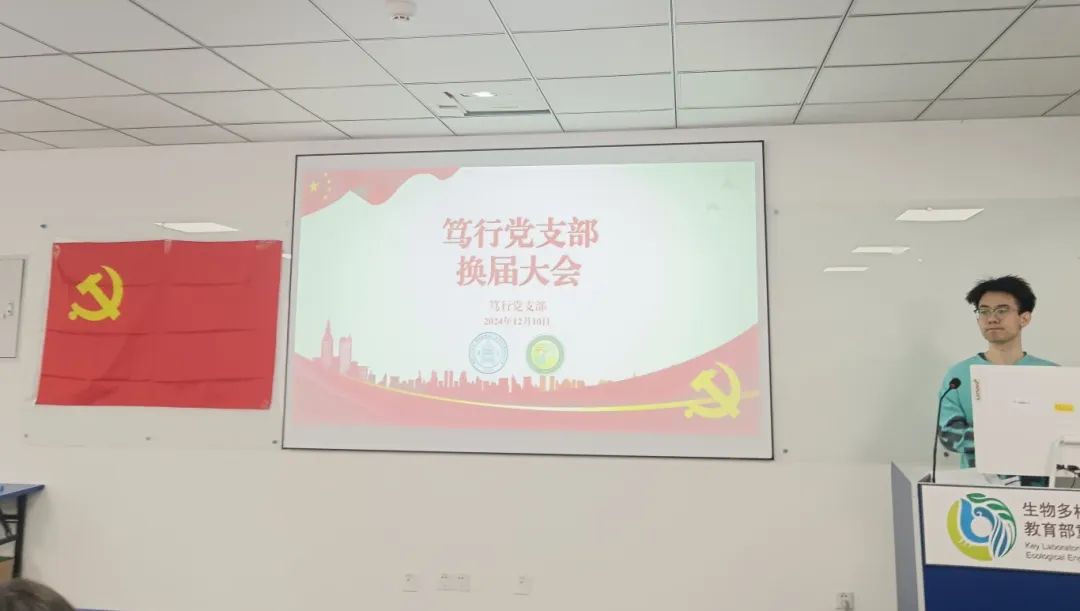 2024年12月9日,伟德国际1946bv官网笃行党支部在生态楼a105教室顺利召开2024年度换届大会。会议由支部书记贾康宁同志主持,讨论关于笃行党支部支委换届问题。大会应到党员25人,实到17人,有选举权党员11人,会议邀请到了笃行党支部理论指导教师席超老师列席会议。