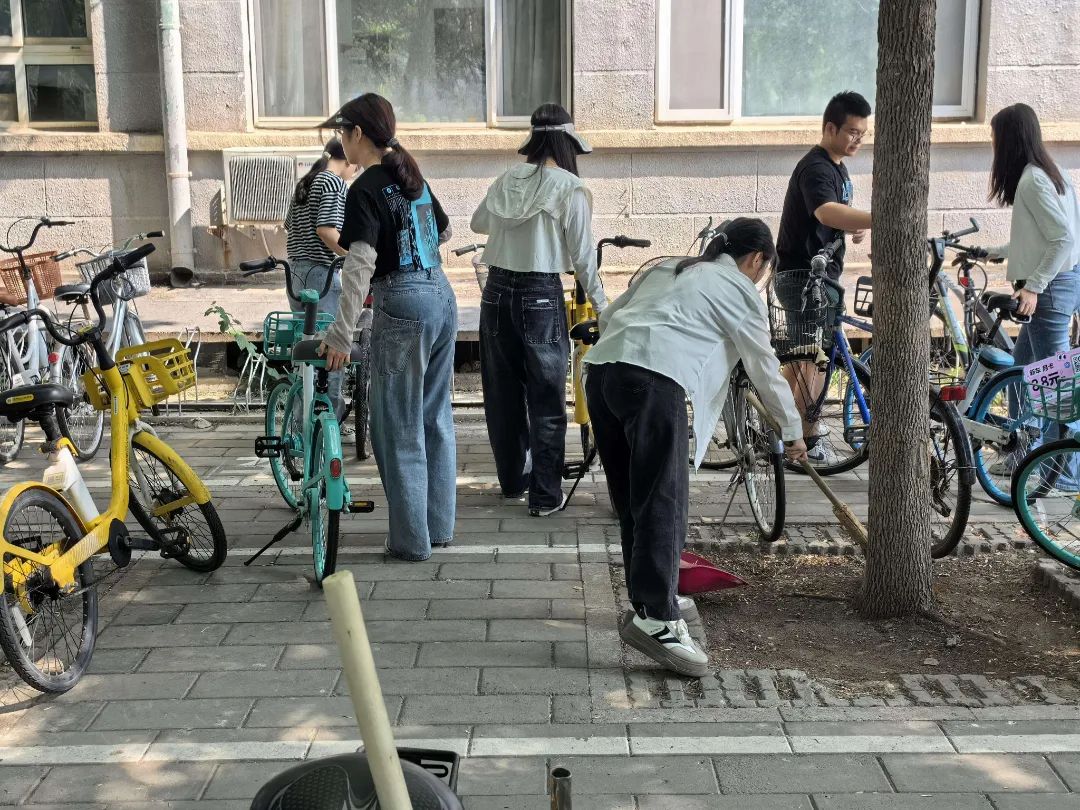 5月21日9:00-10:30,崇德党支部和博学党支部共计24名同学参与了化学楼停车大棚和学一到学四停车区域的卫生清洁志愿活动,主要进行清扫垃圾、摆放自行车等工作。这些区域由于人流量较大,停放车辆较多,存在犄角旮旯难以清洁、车辆摆放杂乱无章、影响行人正常通过等问题,同学们通过一上午的劳动,使得这片区域变得整洁有序。