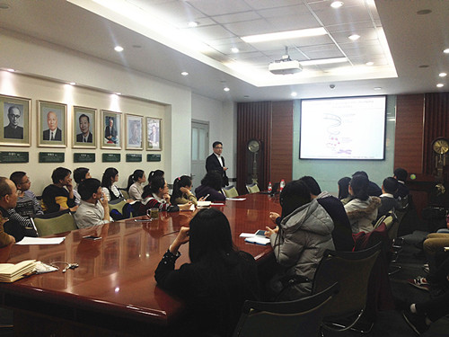 本次学术报告中, 王恒斌博士介绍了组蛋白H2A的泛素化修饰调控方面的研究内容。其中包括应用生物化学方法以及蛋白质组学SILAC技术筛选H2A的泛素化酶以及ubH2A结合蛋白分子RSF1,随后对RSF1怎样调控基因表达方面进行了深入研究。王恒斌博士的报告受到师生们的热烈欢迎,报告会后同学们就报告所涉及的科学问题、实验技术方法与王恒斌博士进行了深入的交流。