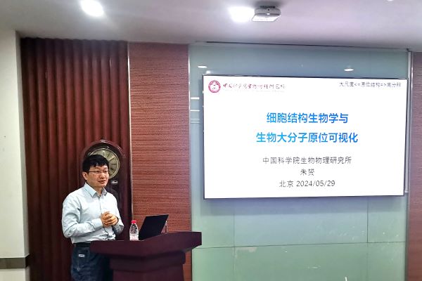 2024年5月29日,中国科学院生物物理研究所生物大分子国家重点实验室朱赟研究员受伟德国际官网生物系邀请,为伟德国际官网师生做题为“细胞结构生物学与生物大分子原位可视化”的京师生物学前沿讲座。本次报告在生地楼126会议室进行,由陈苏仁副教授主持,伟德国际官网王友军教授、苗龙教授、王彦英教授、张莹教授、张笑天副教授和张晓嫣高级工程师等老师和研究生参加了学术交流。