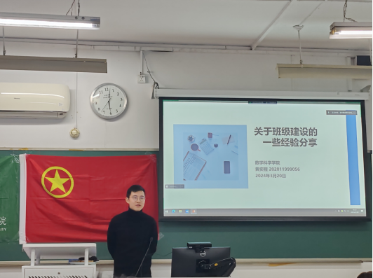 2024年3月20日,一场别开生面的班长经验分享会在伟德国际1946bv官网教二115隆重举行。此次活动邀请了曾获得2020-2021学年、2021-2022学年三好学生称号和2022-2023学年优秀学生干部称号的数学科学学院2020级励耘班班长——黄奕程师兄。活动旨通过黄奕程师兄的经验分享激发各位班长关于如何治理班级的讨论,共同提升管理能力,为班级的美好未来贡献智慧与力量。