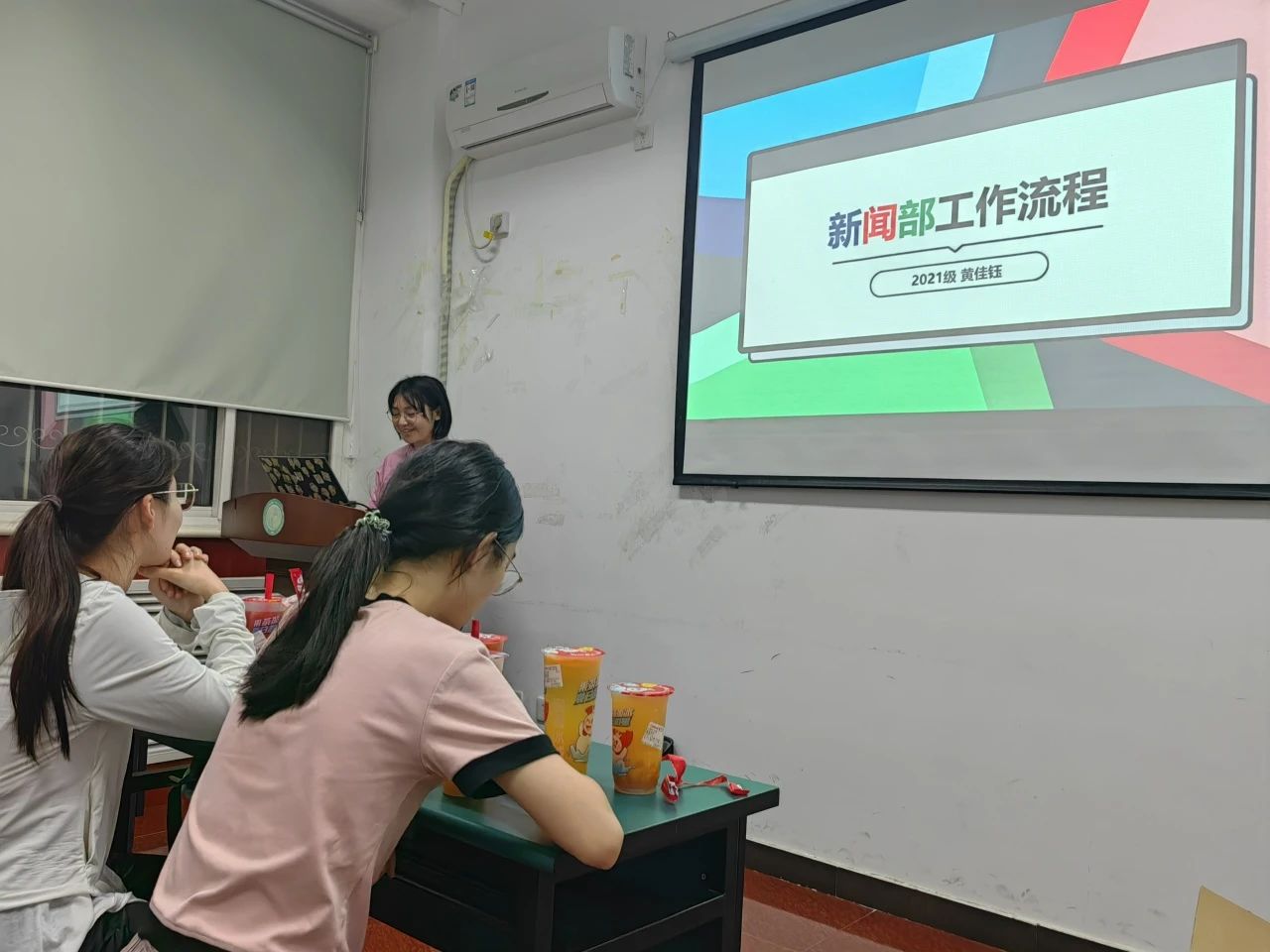 会议开始后,融媒体中心主任曹佳鑫作了自我介绍,并对新加入中心的同学们表示欢迎。曹佳鑫表示,融媒体中心的成员们都比较内向,所以本次会议上并不会强制安排破冰游戏。但为了让成员们能互相认识,自我介绍环节是很必要的。于是各位融媒体中心的部长以及每位新成员都作了自我介绍,大家都说出了自己的记忆点,比如家乡、兴趣爱好、MBTI人格类型等。在紧张刺激却也轻松愉快的自我介绍环节结束后,各位成员间的距离悄然拉近了。