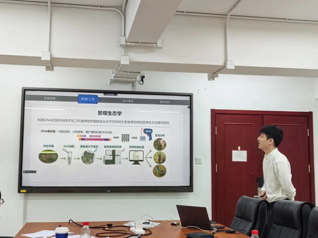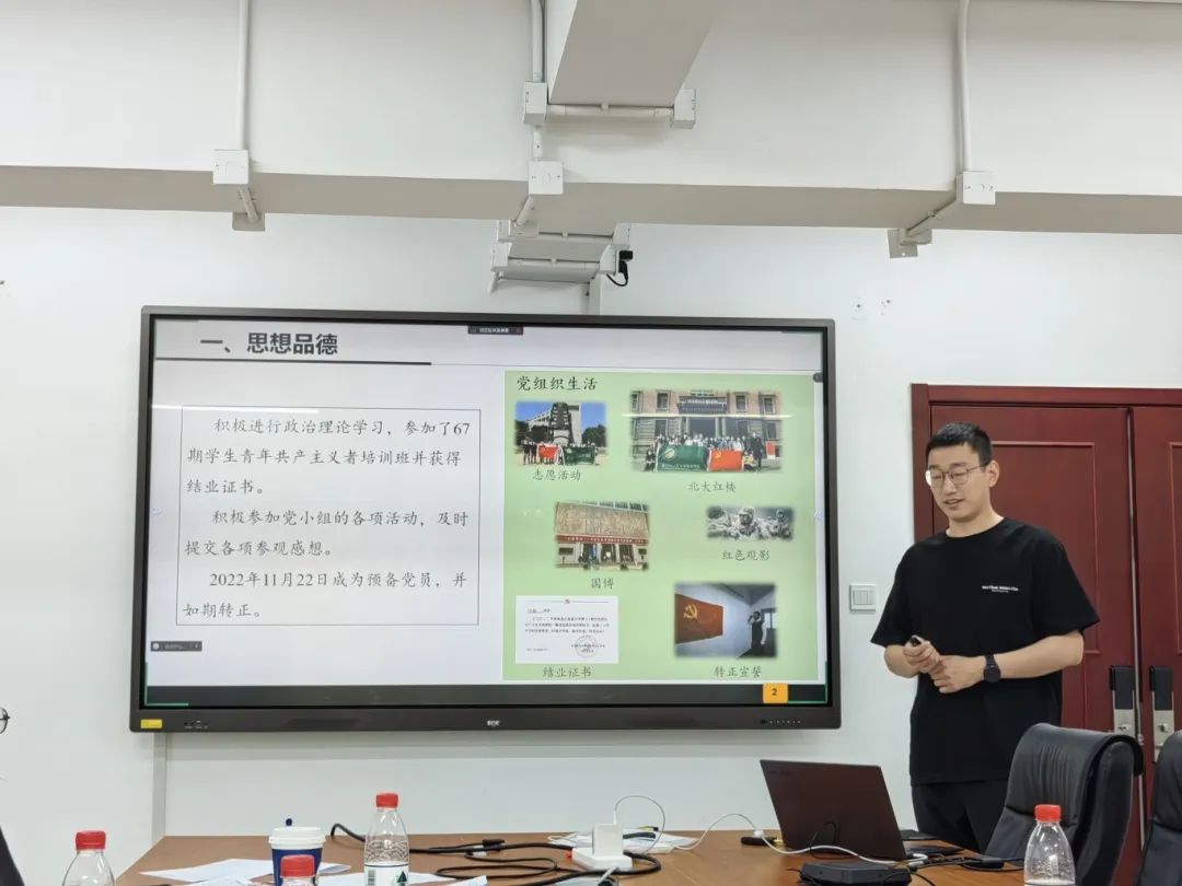 候选人根据抽签顺序分别从思想品德、科研工作、综合素养、获奖情况和突出贡献等多方面进行展示。他们用真诚的言辞和深情的回忆,展现了自己丰富多彩的大学生活和成长收获。他们在学业上刻苦努力,在科研上钻研求索,在学生工作中积极奉献,在志愿服务中勤于实践,取得了优异的成绩,展现了创新能力,增强了社会责任感。这些成长经历不仅见证了他们的进步与发展,更展现了生科学子的青春风采。评审专家们认真听取候选同学们的个人汇报,对大家取得的丰硕成果给予充分的肯定,有针对性地进行了点评与提问,并进行综合评分。本次答辩也同步进行腾讯会议线上直播,面向全院同学开放。