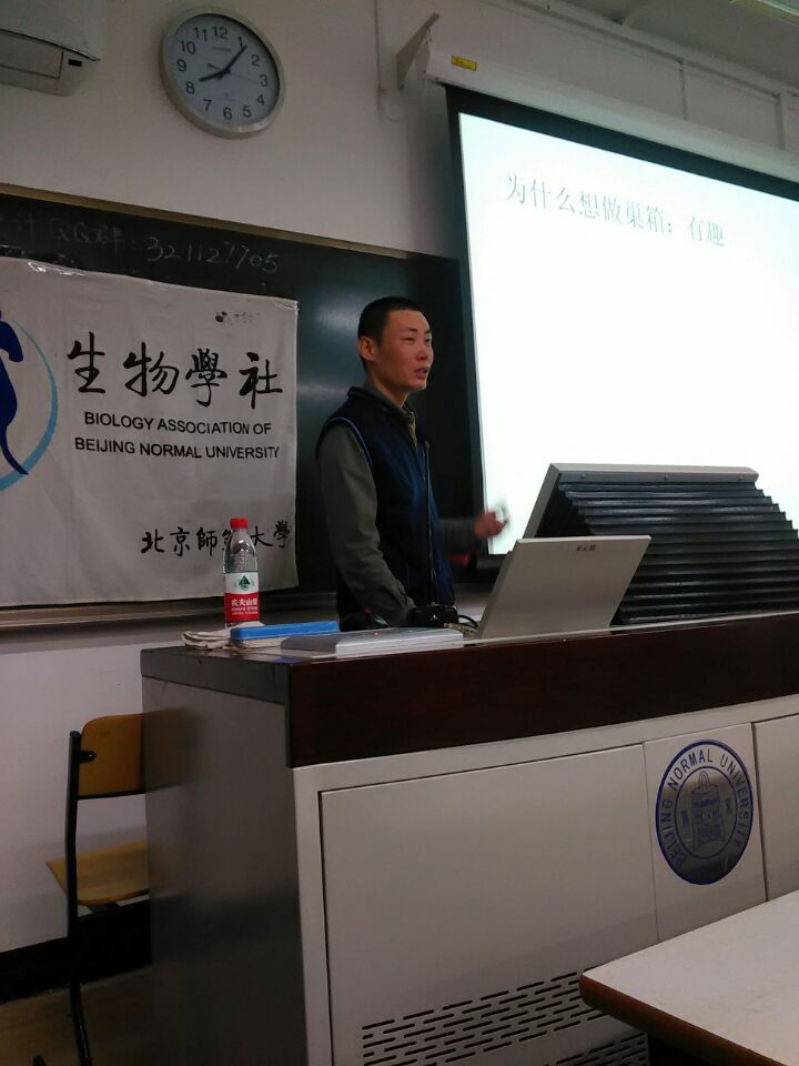 2015年10月22日星期四,正值金秋,落叶缤纷,由伟德国际1946bv官网生物学社举办的“织巢”巢箱设计与制作大赛赛前讲座,在教二211举行。