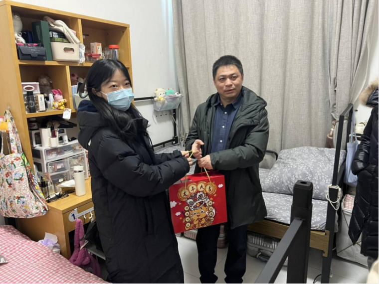 随后,老师们前往一号学生公寓,探望延期博士同学并送上慰问礼包。